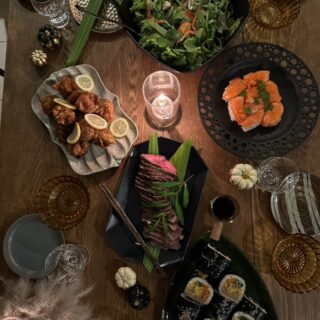 2024年のハロウィンは、ロピアの食材を使って簡単おうちメニュー🎃かぼちゃのサラダとローストビーフを作り、サーモン寿司をシソでジャックオーラン風にアレンジ。時短でもハロウィン感たっぷりです。
