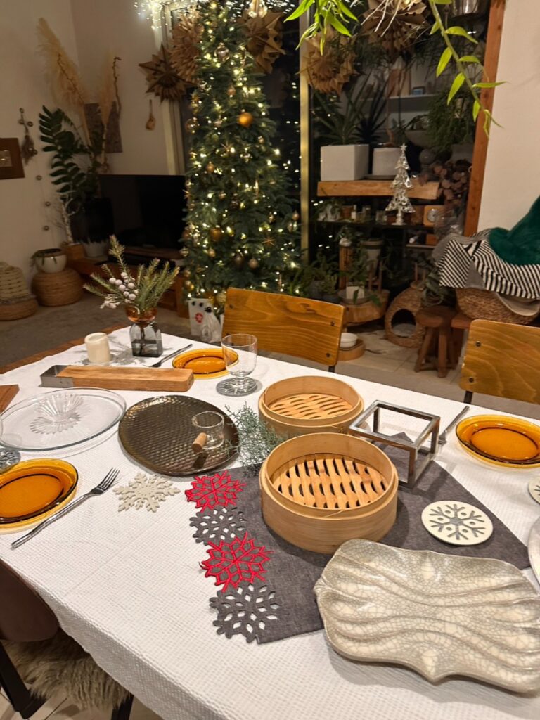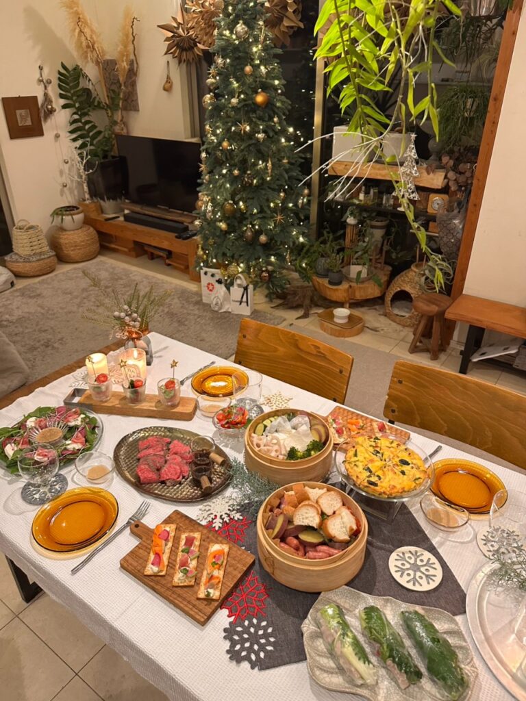 今回はお料理を盛り付ける前に器をだしてテーブルコーデをだいたい考えてから盛り付けしました